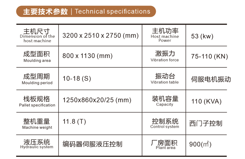成型周期 (s) | 10-18(磚型區(qū)別) | 液壓系統(tǒng) | 編碼器伺服液壓控制 |