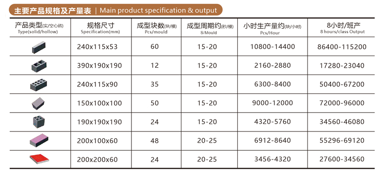 磚數(shù)量(塊/8h) 155680-241900 2.3KG/塊